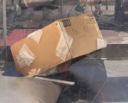 opponents inside of a cardboard box, making it impossible to see which